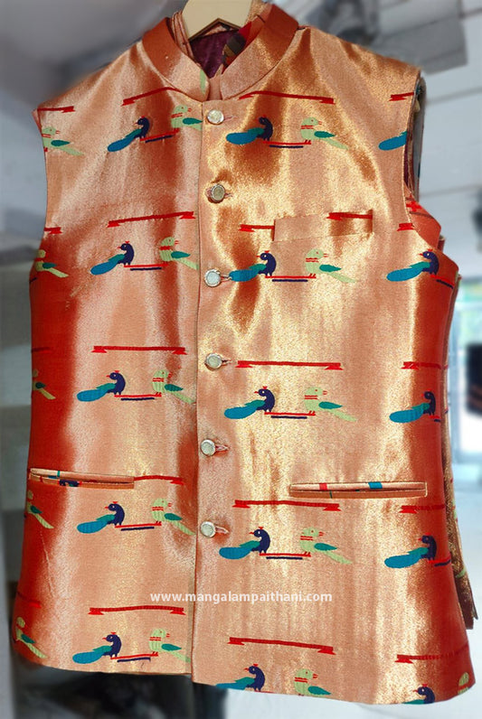 Mor-Popat Design Paithani Jacket For Men