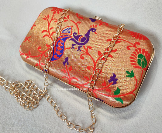 Soft Silk Peacock Paithani Clutch
