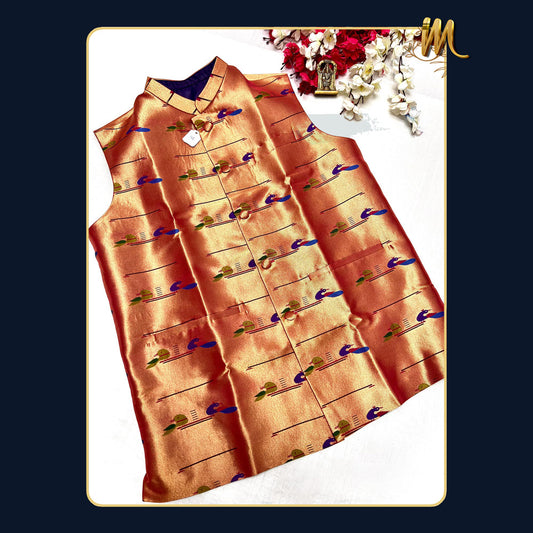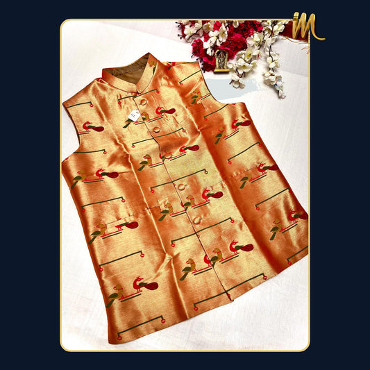 Golden Zari Paithani Jacket For Men