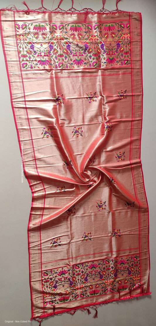 Paithani Dupatta - Pink With Golden Zari