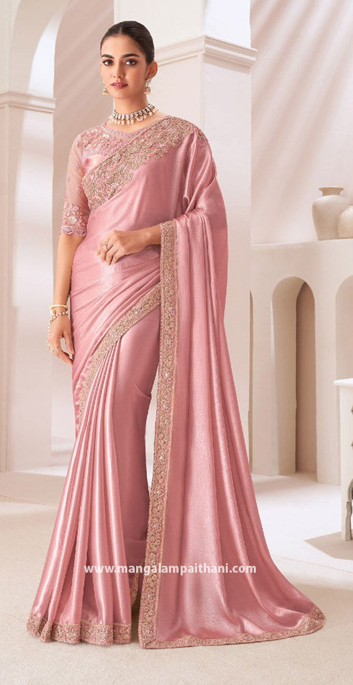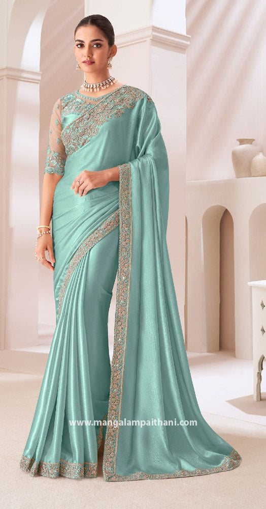 Satin Chiffon Saree With Embroidery Work Border