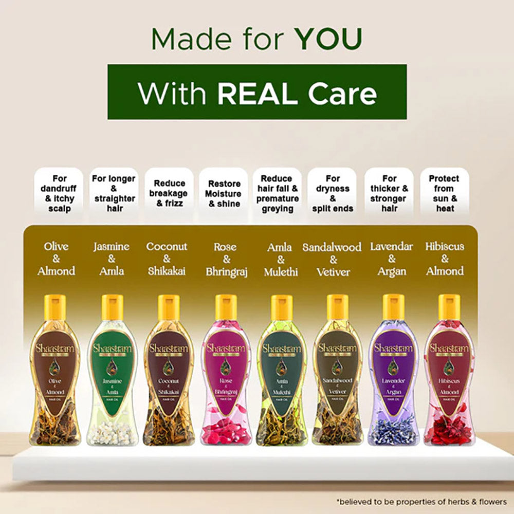 Shaastram - Coconut Shikakai, Amla Mulethi & Sandalwood Vetiver Hair Oil (180 ml) - Pack Of 3